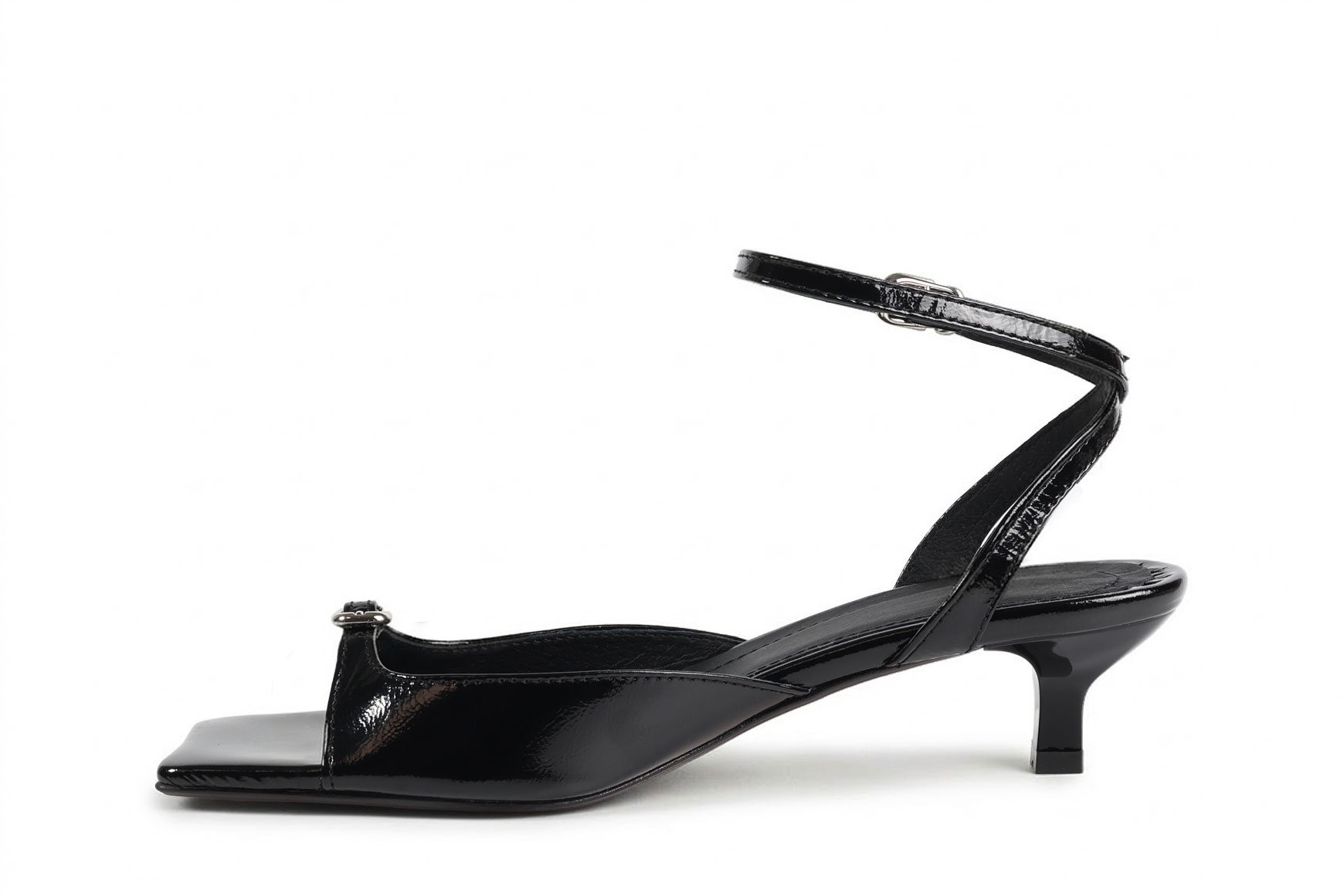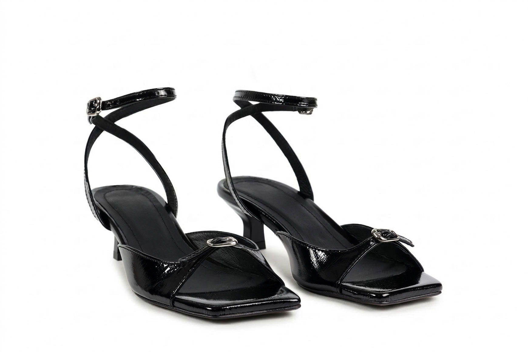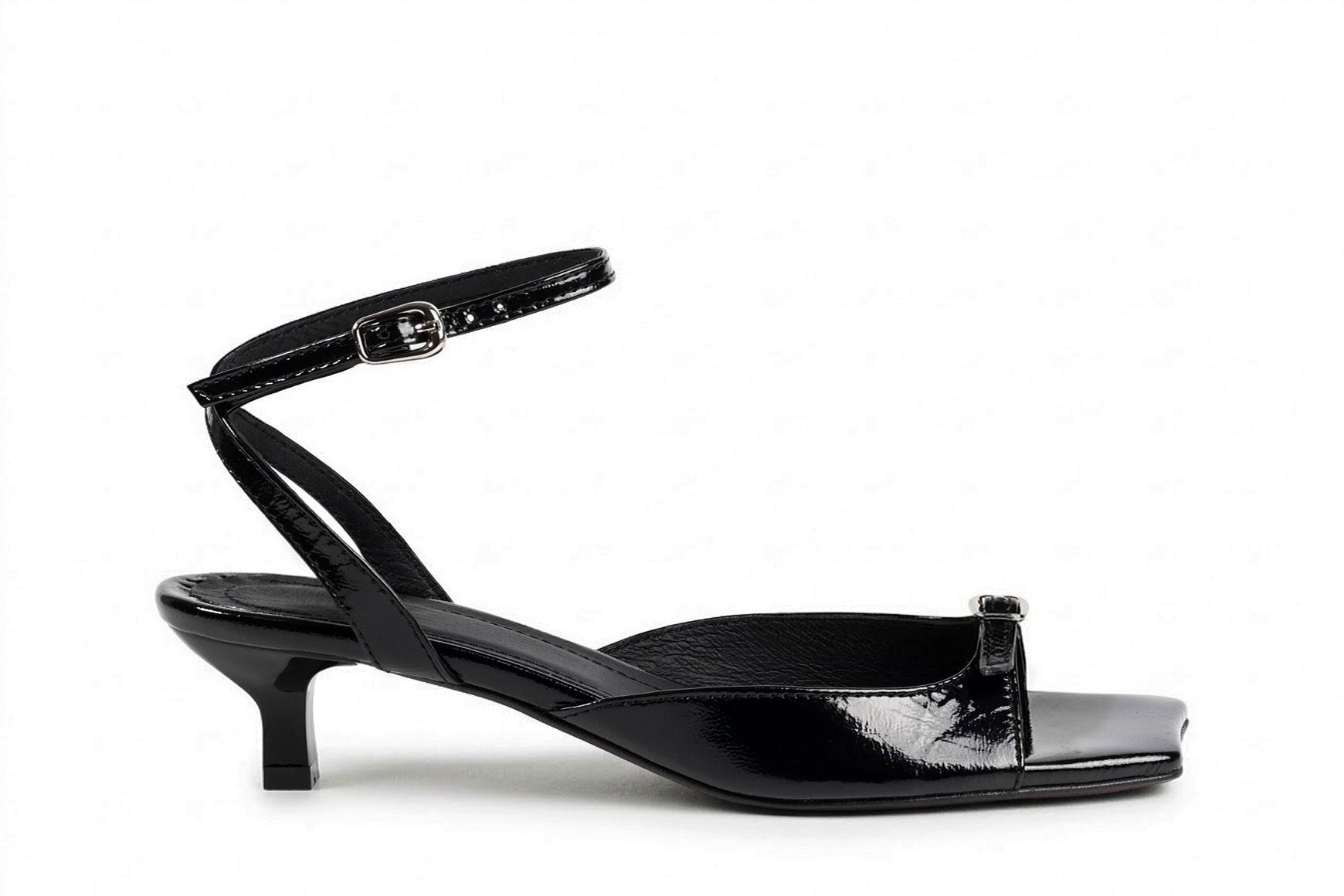 Босоніжки жіночі чорні з натурального лаку (008955)