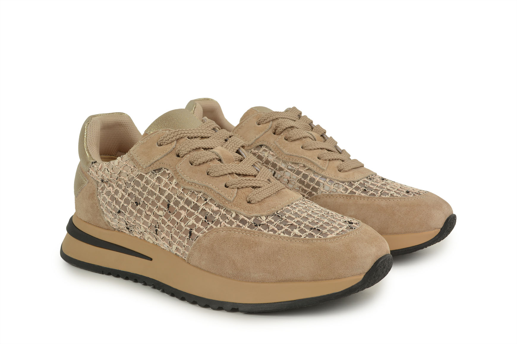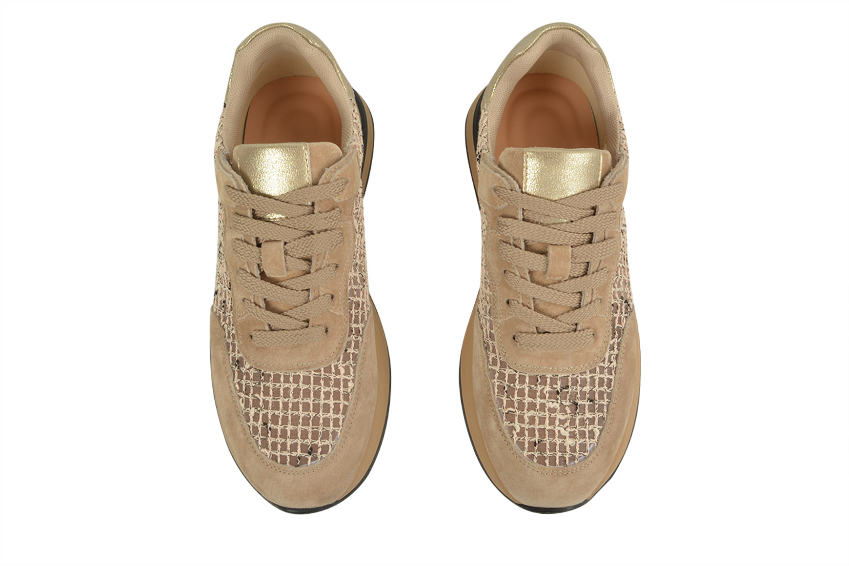 Кросівки жіночі бежеві з натуральної замші, текстилю (008928)