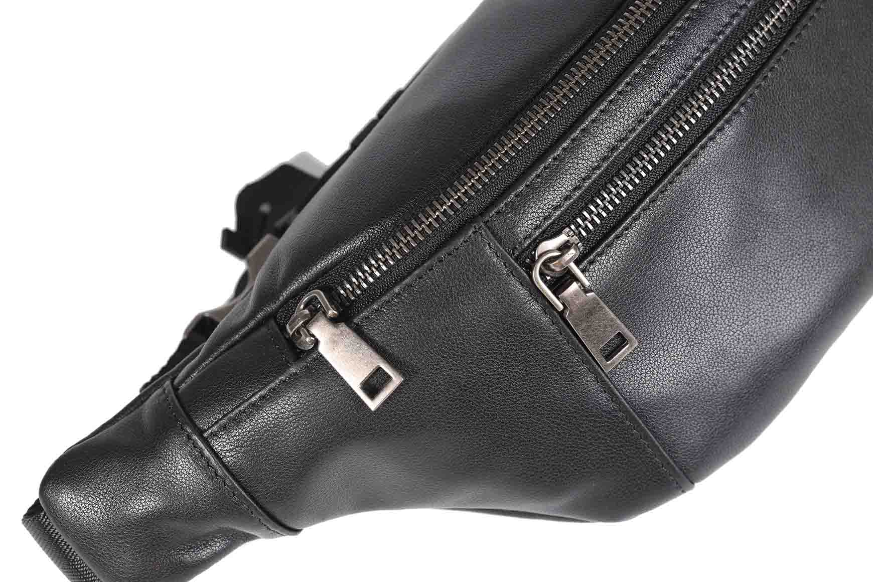 Сумка поясна чоловіча чорна з натуральної шкіри (008801)